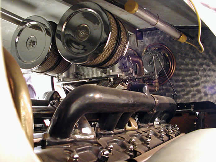 Big BerthaPrevious | Up | NextThe engine is a 980 cu. in.O.H.V. V12 gas motor now running on propane built by the same Seagraves fire truck co. She takes 25 quarts of oil, redundant systems ( two plugs per cylinder - 2 distributers-etc.) was built to sit running at a fire scene 24 hrs. pr. day, days on end when needed. |