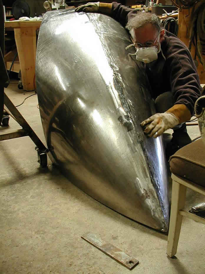 Rear fender after initial welding. All the seams were welded on both the inside and the outside and then all welds were hammered and dollied.