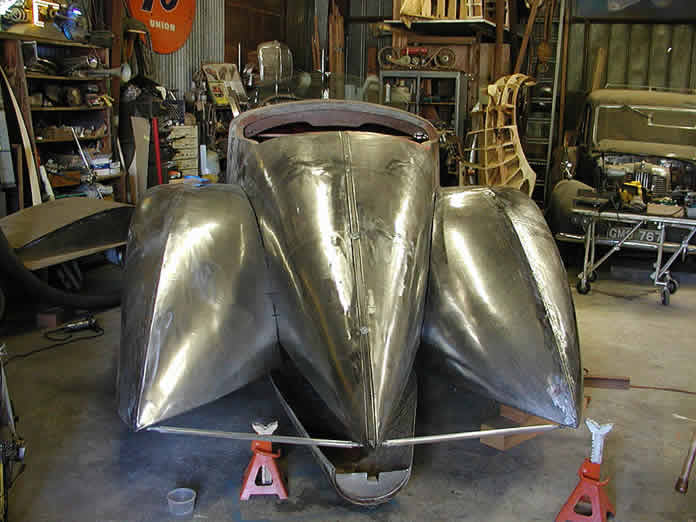Attaching welded fenders to boatail. The struts are keeping the fenders in position while we determine connection points.