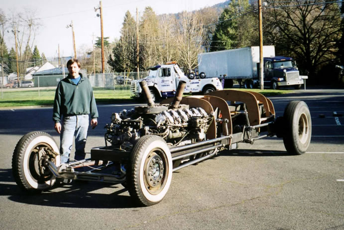 Randy Grubb with rolling chassis at the park in Grants Pass Or.